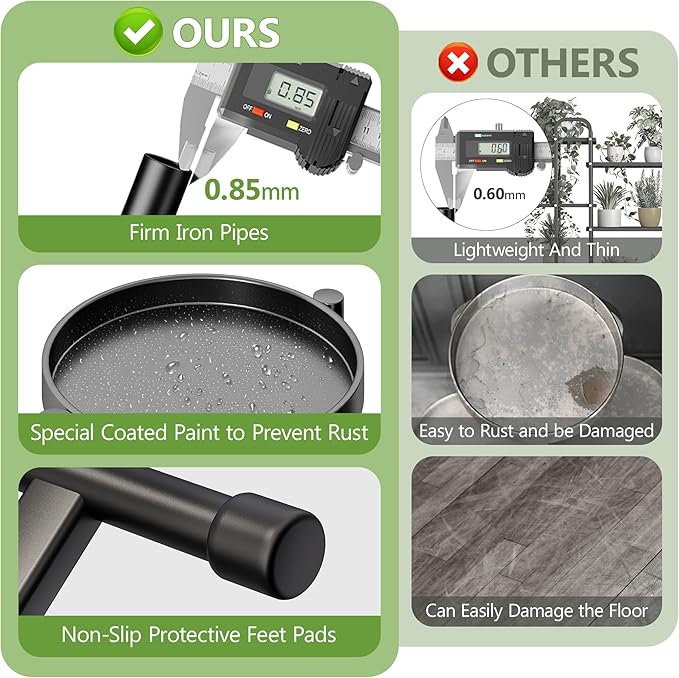 - 【Strong & Sturdy】Our 3 tier metal plant stand is constructed with heavy-duty iron and adopt high temperature electrostatic spray paint every weld is guaranteed to be long-lasting and resistant to corrosion; Perfect for using this black plant stand for outdoor, garden, and patio. The bottom of the plant stand is equipped with protective pads to prevent floor scratches and abrasions. It has a maximum weight capacity of 156 lbs.