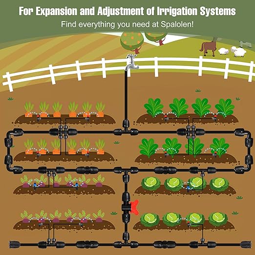 - Efficient Water Distribution: These 1/2-inch drip irrigation fittings connectors divide your 1/2" main line into multiple branches, creating an efficient drip irrigation system, ensuring a stable water flow in your garden. Solve the low pressure problem at the end of the pipe to achieve optimal drip distribution and make plants healthier.