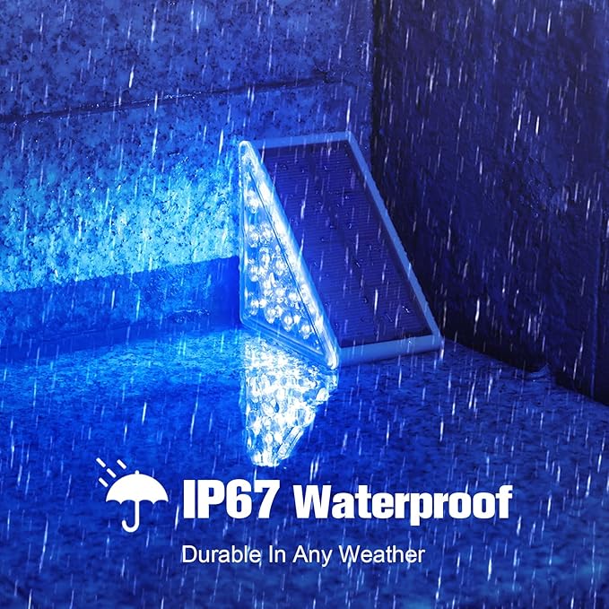 - 【Waterproof IP67】Solar step lights outdoor waterproof led are made of high-quality ABS materials, fully enclosed integrated design, waterproof IP67, withstand various weather, containing rainstorm, snow and frost. Tips:If you intend to bring sidewalk lights indoors in the winter ,you can just place them on the steps without sticky tape ,according to your actuall situation.