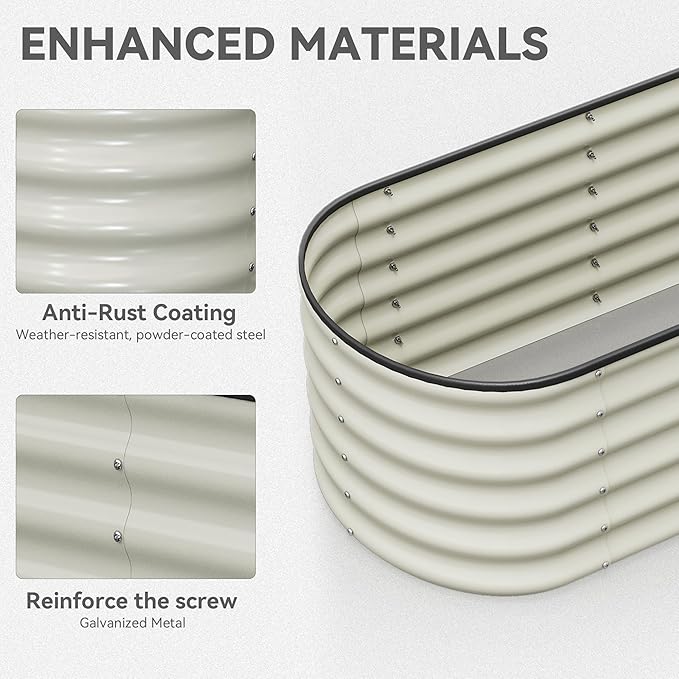 - Improved Material: Made of strong steel panels in a smooth oval shape, the raised planter bed ensures safety; Features rubber strips for added safety when using