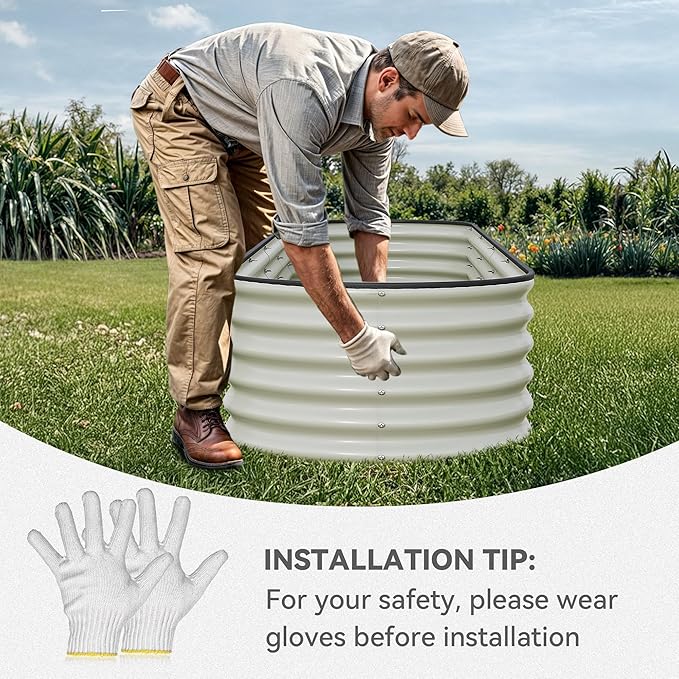 - Straightforward Setup: With our instructional guide, assembly of the raised flower bed can be completed in 15-30 minutes; We provide 1 pair of gloves for your safety, so please wear them before installation
