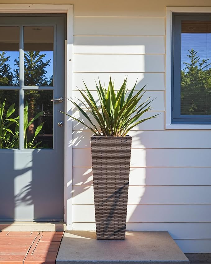 - Stylish and Stable Design: Greesum Large Tall Planter features a taper design with an elegant woven texture, combining modern aesthetics with rustic charm. This design not only enhances the visual appeal of your outdoor space but also provides added stability, preventing your planters from tipping over in windy conditions.