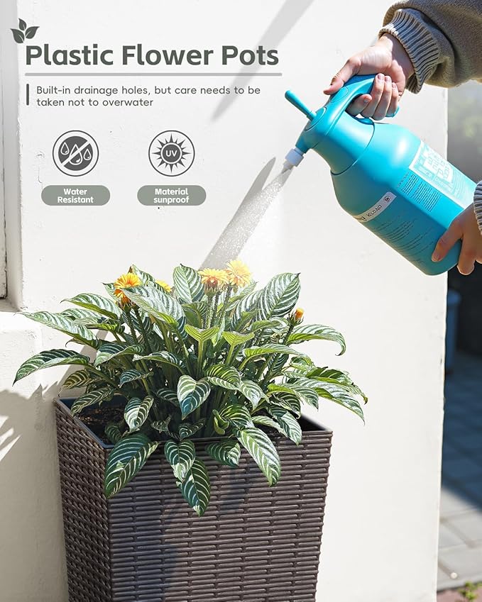 Greesum 32 Inch Tall Plastic Planters with Rattan Texture – Set of 2, Detachable Inner Pot & Drainage Holes, Indoor/Outdoor Decorative Flower Pots for Large Plants, Trees, Patio, and Garden, Brown