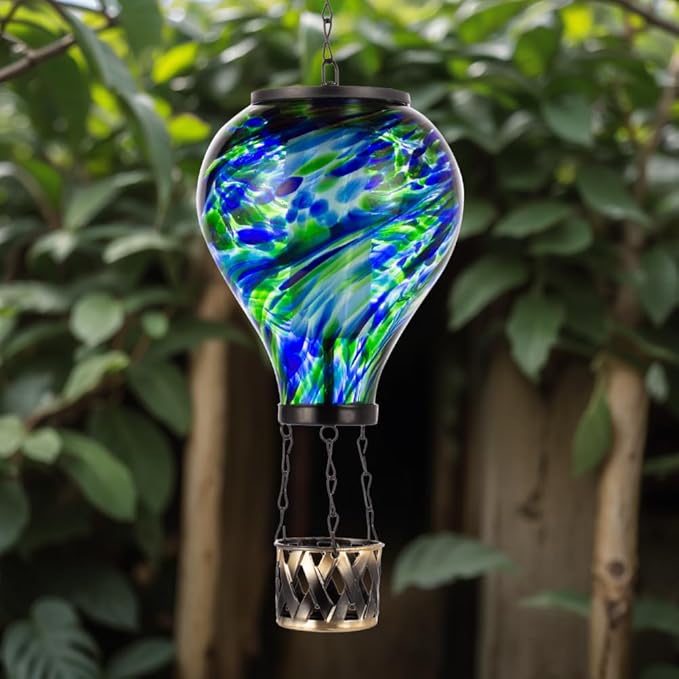 - 【 Hot Air Balloon Solar Lantern】Starsoul hot air balloon solar lantern features a mesmerizing blend of blue and green hues swirling together in a captivating dance of color. You can add some small figures or solar candles to the basket of hot air balloon lights to make it even prettier.