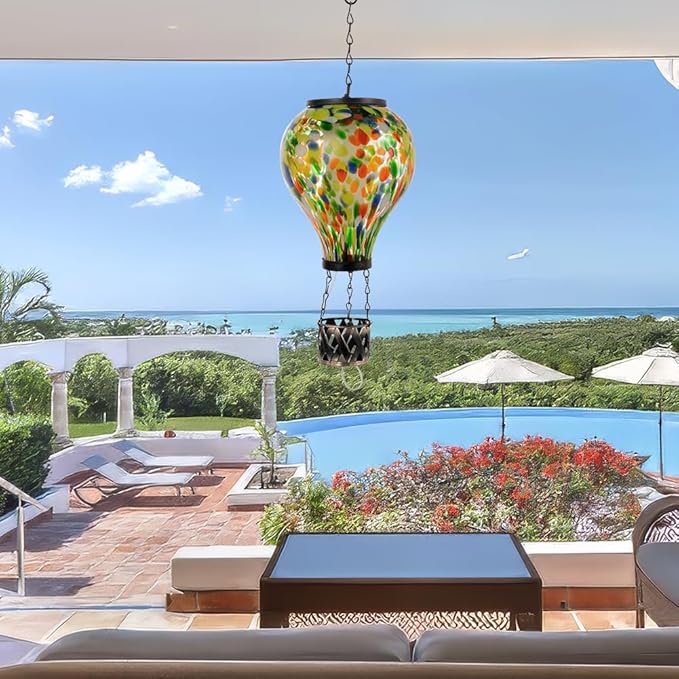 - 【Wide Application】Solar hot air balloon lantern with flame is a great home decor. You can hang the solar lantern on porches, trees, pergolas, balconies, or ledge. Add elegance and color to your outdoor space with this beautifully crafted hot air balloon decorations.
