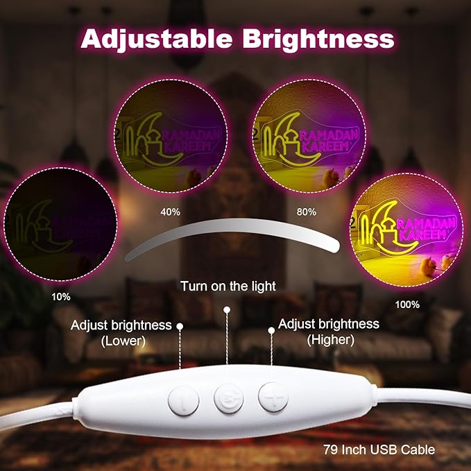 - Easy to Hang and Display: The ramadan led sign comes with a convenient hanging device that can be easily mounted on walls, doors, or even windows. Its lightweight design means you can quickly decorate your space without the hassle of complicated installation.