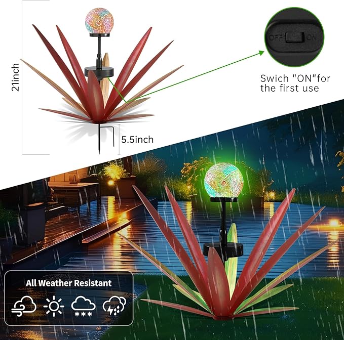 - Solar powered light of agave sculpture can be lit up for 8-10 hours with a full charge