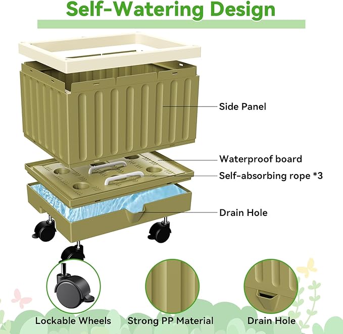 - Self-Watering Tomato Planter--Three self-watering ropes and panels with drainage holes, this design support healthy plant growth; The balanced trellis structure provides a stable environment for creeping and vine plants to thrive, combining practicality with aesthetic appeal.