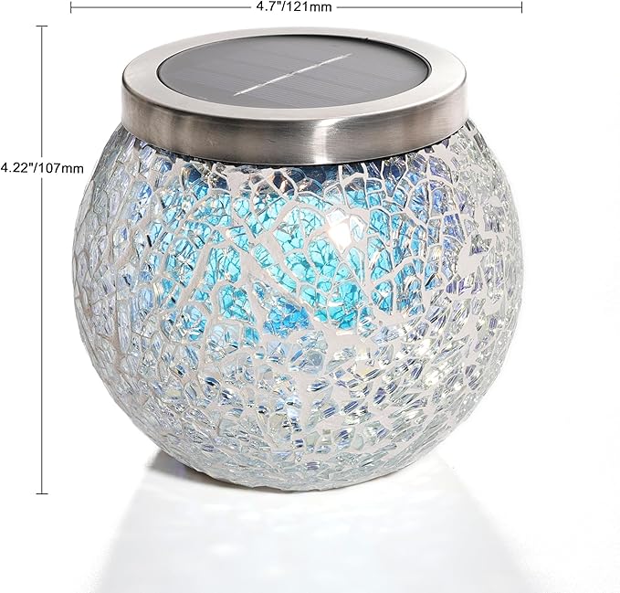 Cooo Heavy Solar Mosaic Crackle Glass Light with Dual Solar Panels, Color-Changing RGB Light, Exclusive Dazzling Glass, Waterproof Outdoor Tabletop Garden Light Landscape Path Light 2 Pack