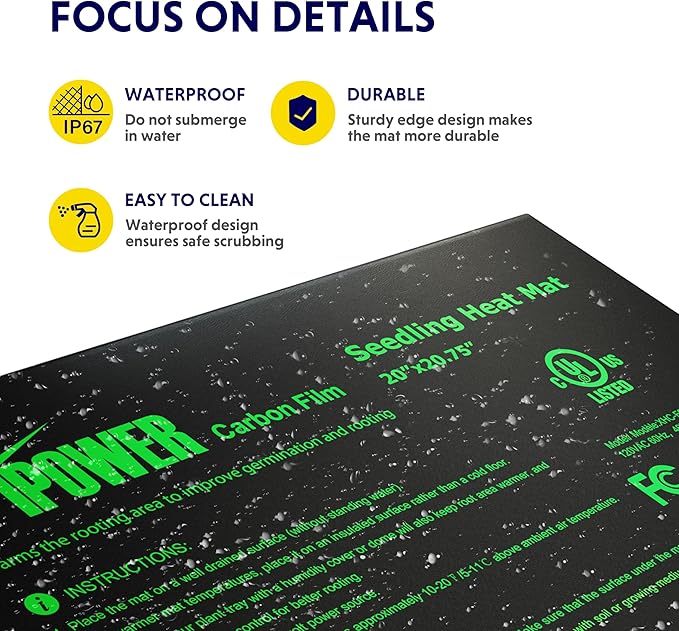 - Heating film structure: heating film ensure uniform heating. Warms root area 10-20℉ (5-11℃) over the ambient air temperature, which will increase the success of seedlings and cuttings